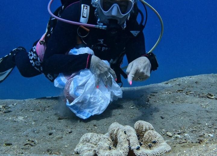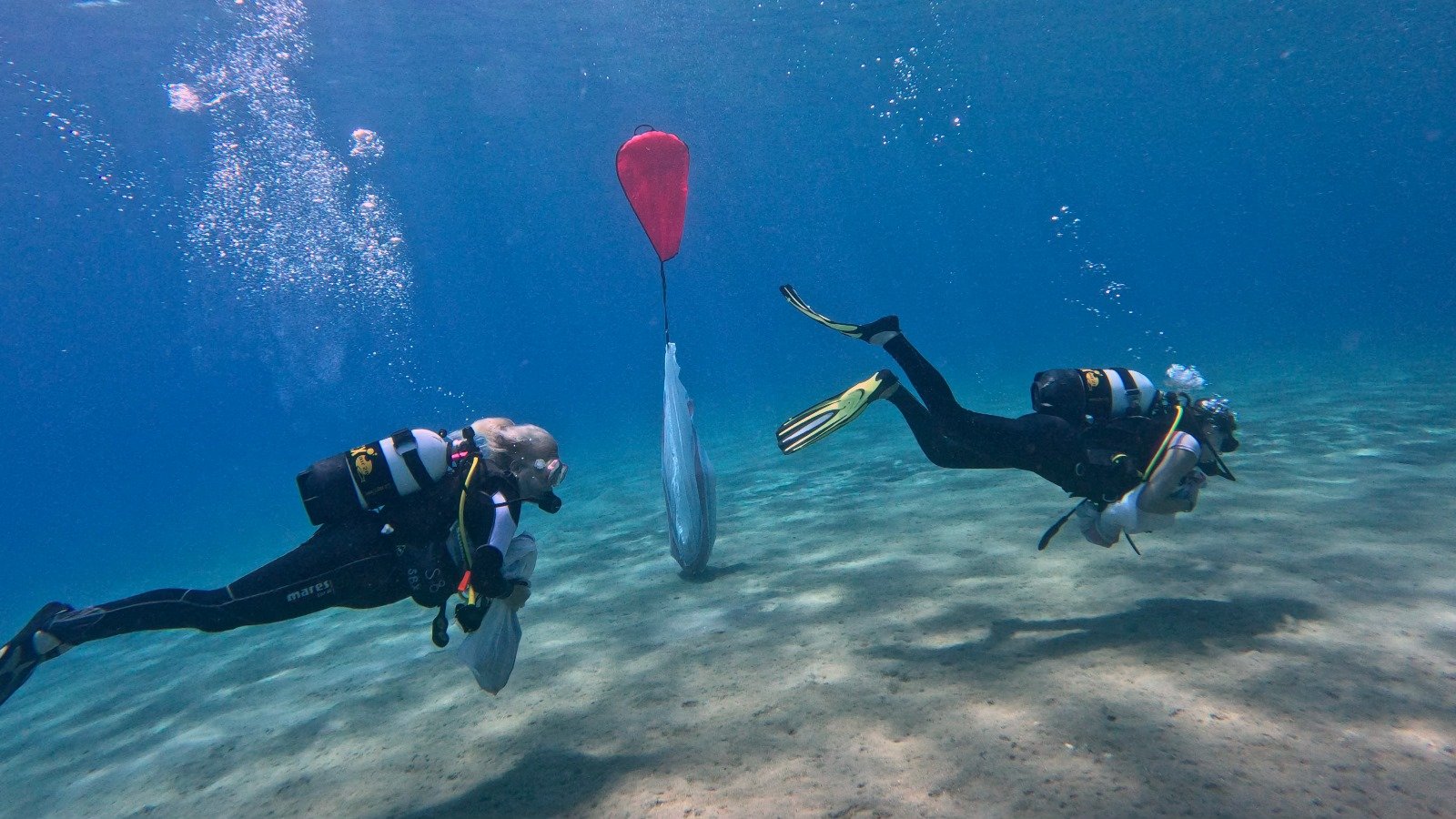 Today 29 divers in 2 dives collected an incredible 525 kilos – filling 41 bags.